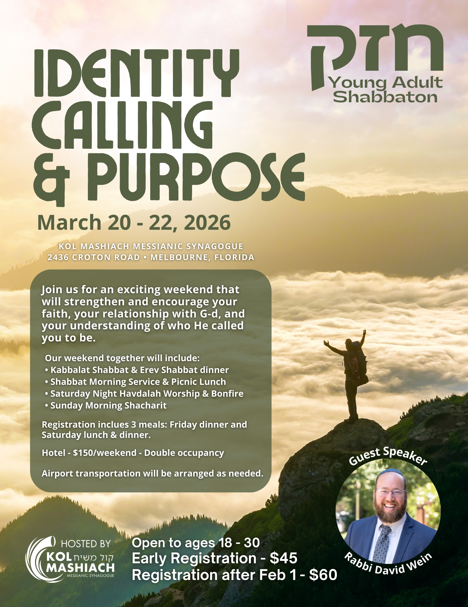We are excited to welcome you to the Chazak Young Adult Shabbaton! If you are looking to connect with other Messianic Young Adults and also be challenged, this weekend is for you!