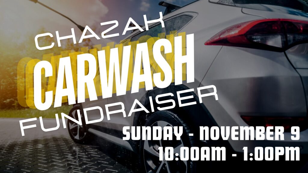 The Chazak Youth and Young Adults will have a car wash at Buz’s Automotive on Sunday, November 9th from 10am to 1pm on the corner of Wickham and Aurora Roads. Please come out and get your car wash to help them raise funds for their spring Shabbaton! If you cannot make it but would still like to donate, go to www.shalombrevard.com/donate and select “Youth Fund.”