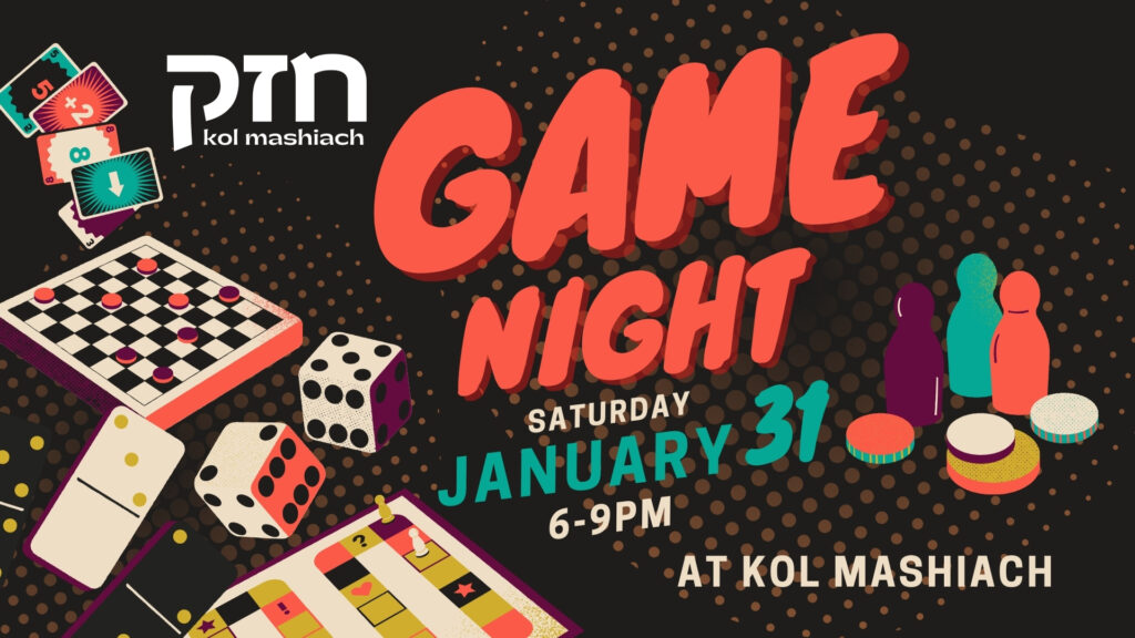 This month for Chazak Night we will be playing games of all sorts! Bring your favorite game  and game night snacks and come ready to have fun on Saturday January 31st. Make sure you speak with Joe, our Youth & Young Adult Director, or email: youth@shalombrevard.com